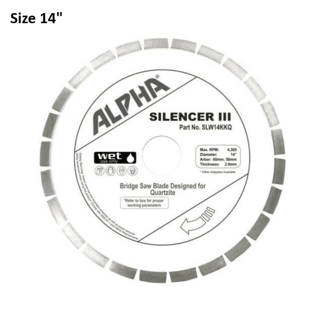 14" Alpha Silencer III for Quartzite Premium Bridge Saw Blade for Quartzite